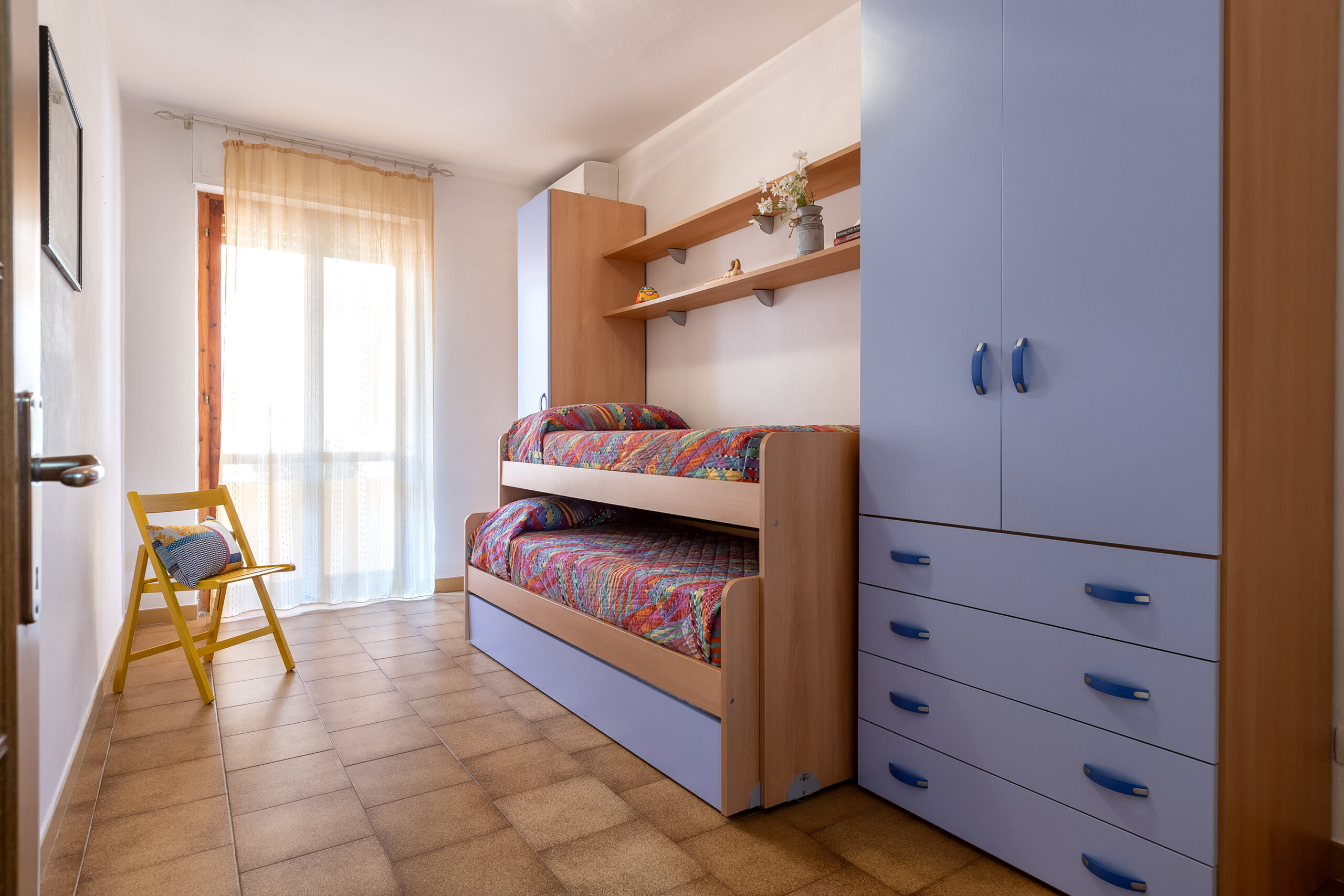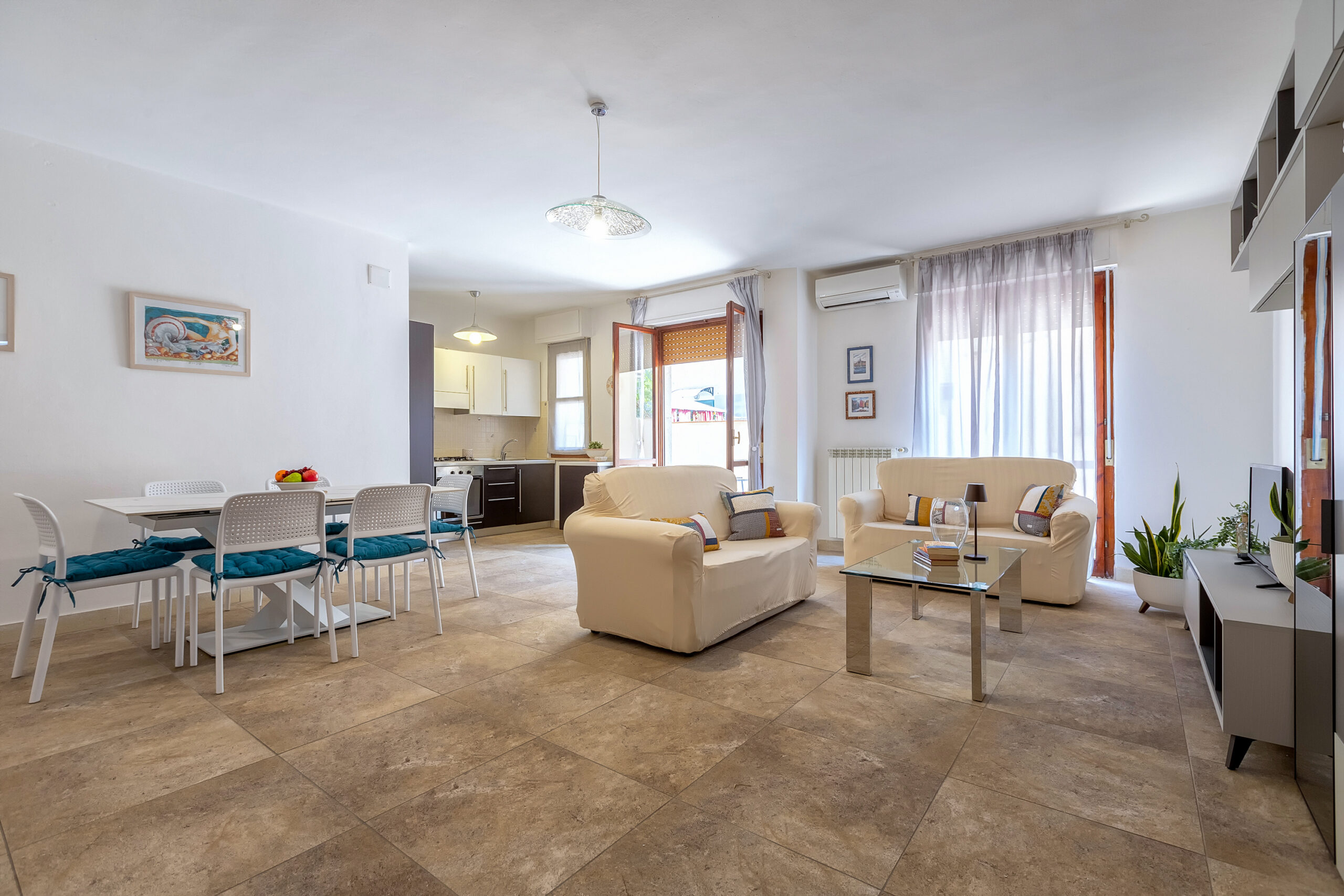 L’appartamento è arredato in stile moderno e funzionale, pensato per offrirvi il massimo comfort. È composto da un luminoso soggiorno con angolo cottura, due camere matrimoniali, una cameretta con tre letti singoli e un bagno con doccia. A completare la casa, una spaziosa terrazza attrezzata,con doccia, perfetta per rilassarsi all’aperto dopo una giornata di mare o di esplorazione della città.