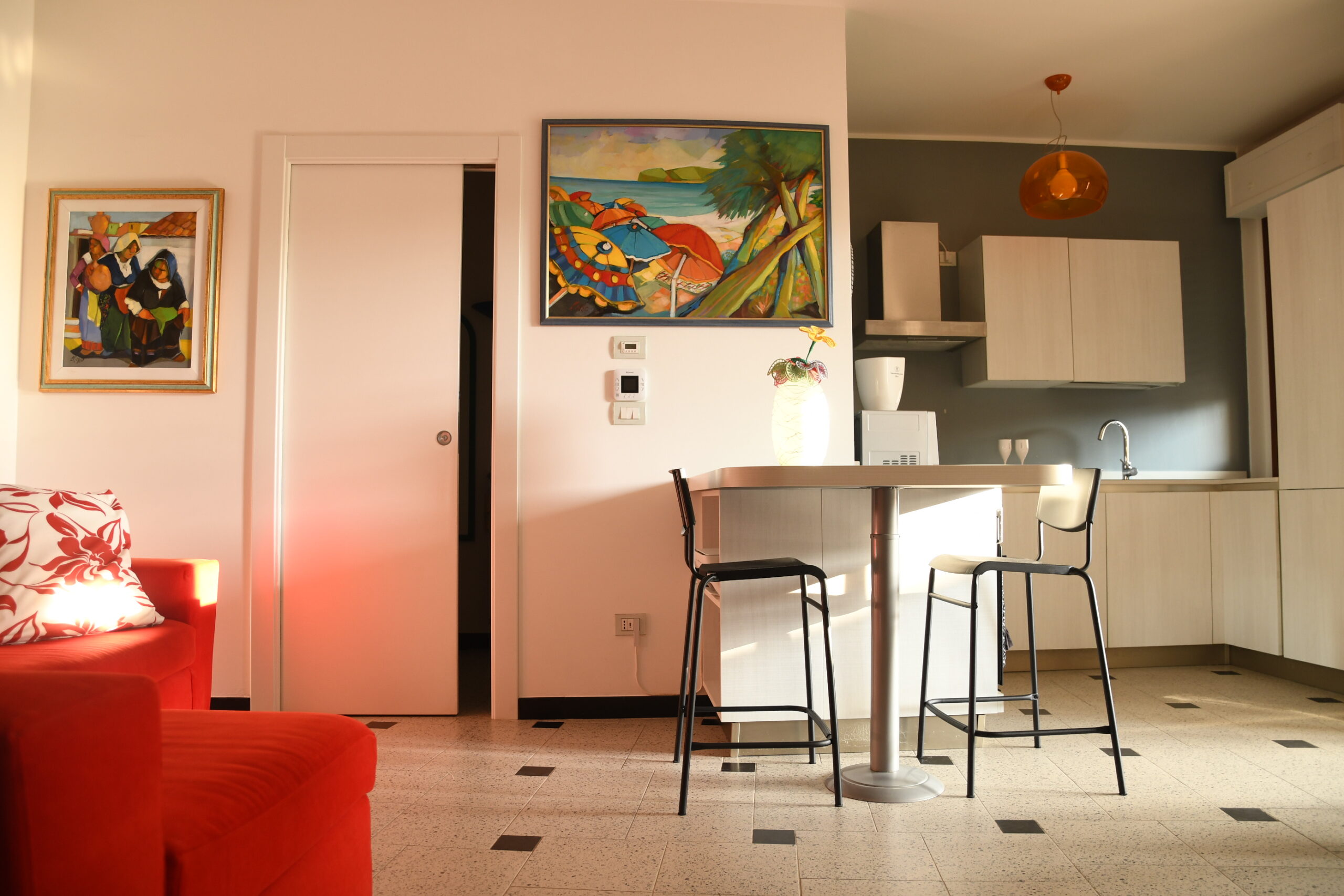 L’appartamento è arredato in stile moderno e funzionale, pensato per offrirvi il massimo comfort. È composto da un luminoso soggiorno con angolo cottura, impreziosito da quadri di un artista locale, una camera matrimoniale accogliente e un bagno con doccia. A completare la casa, una spaziosa veranda attrezzata, perfetta per rilassarsi all’aperto dopo una giornata di mare o di esplorazione della città.