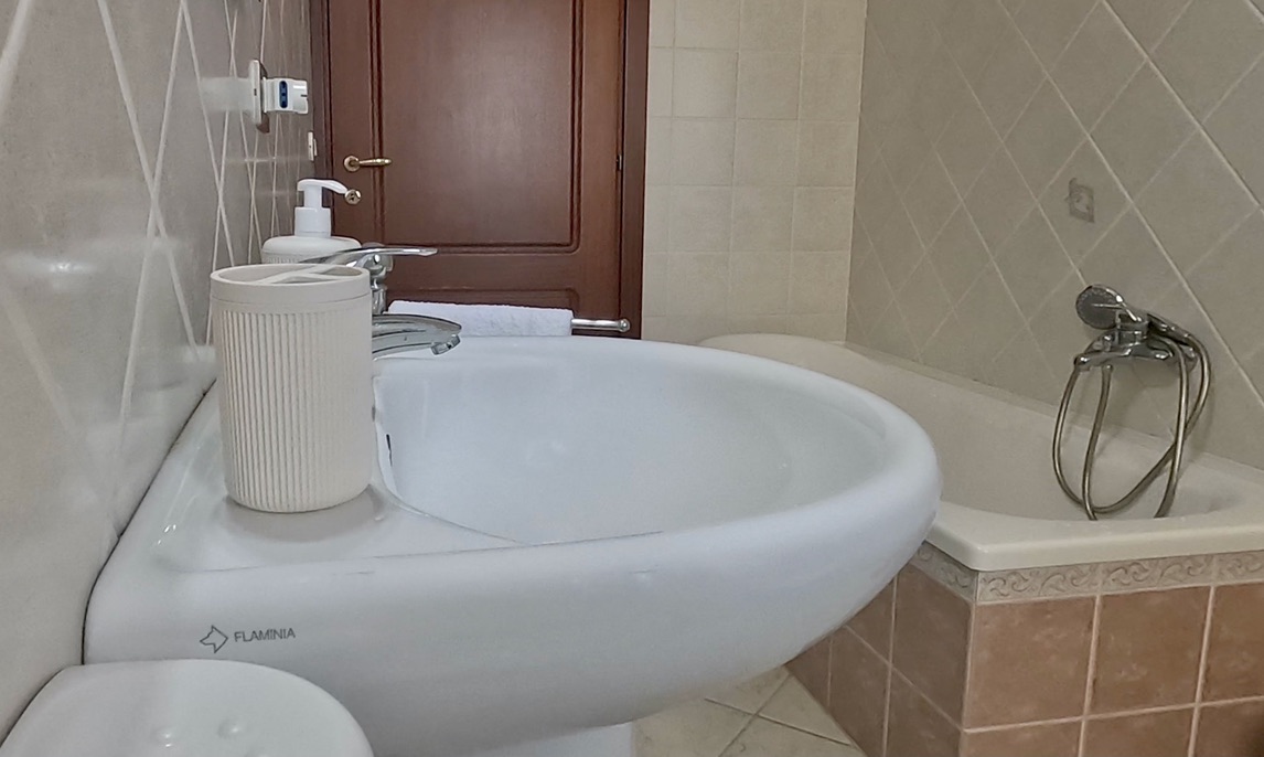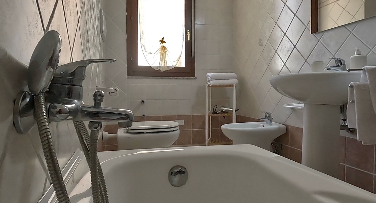 1 bagno completo con doccia e 1 bagno completo con vasca. La casa è l’ideale per ospitare 4 persone.
